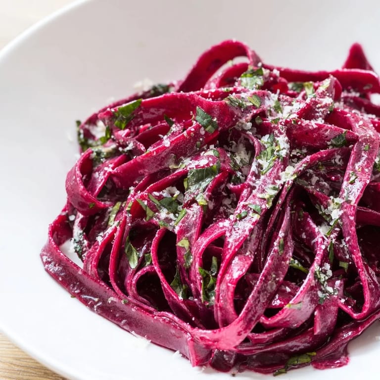 Save I discovered beet noodles completely by accident on a Sunday afternoon when my blender was already out from making soup, and I noticed those gorgeous roasted beets sitting on the counter. What if I just threw one in with the pasta dough? The result was so stunning—this deep magenta that looked almost jewel-like—that I immediately called my partner over to see if I'd actually made it or if something magical had happened in the kitchen.