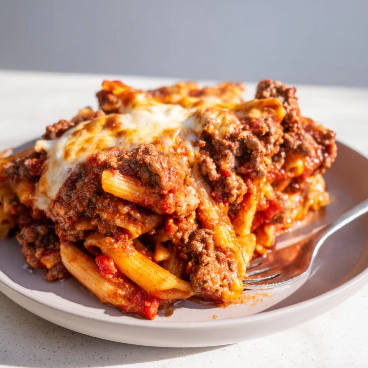 Save A hearty, comforting casserole featuring tender penne pasta, savory ground beef, rich tomato sauce, and a golden, bubbling cheese topping—perfect for family dinners or potlucks.