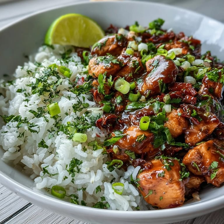 - Scoop a generous portion of warm rice into each bowl, spoon the coconut chicken and plenty of sauce over the top, then finish with a sprinkle of fresh cilantro or sliced green onions.