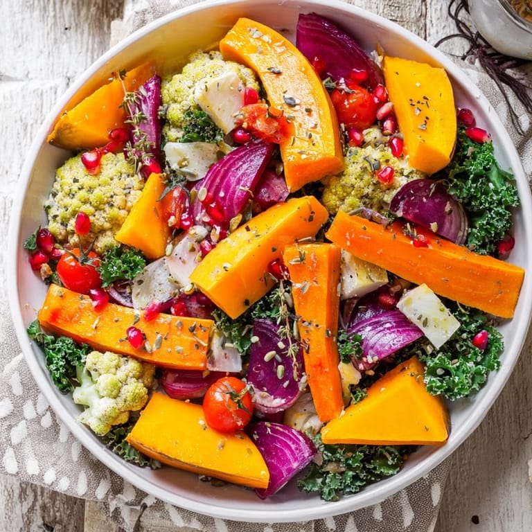 Save A vibrant, eye-catching centerpiece made from roasted winter vegetables, arranged in a festive wreath shape. Perfect for holiday gatherings, this dish combines seasonal flavors with a stunning presentation.