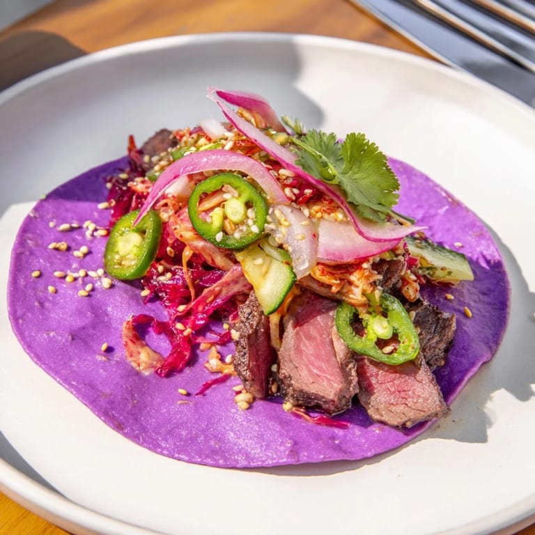 Save A vibrant, flavor-packed recipe blending inspirations from street food around the world—think Korean bulgogi tacos, Filipino ube crema, and zesty Mexican toppings. Perfect for a fun, customizable meal!