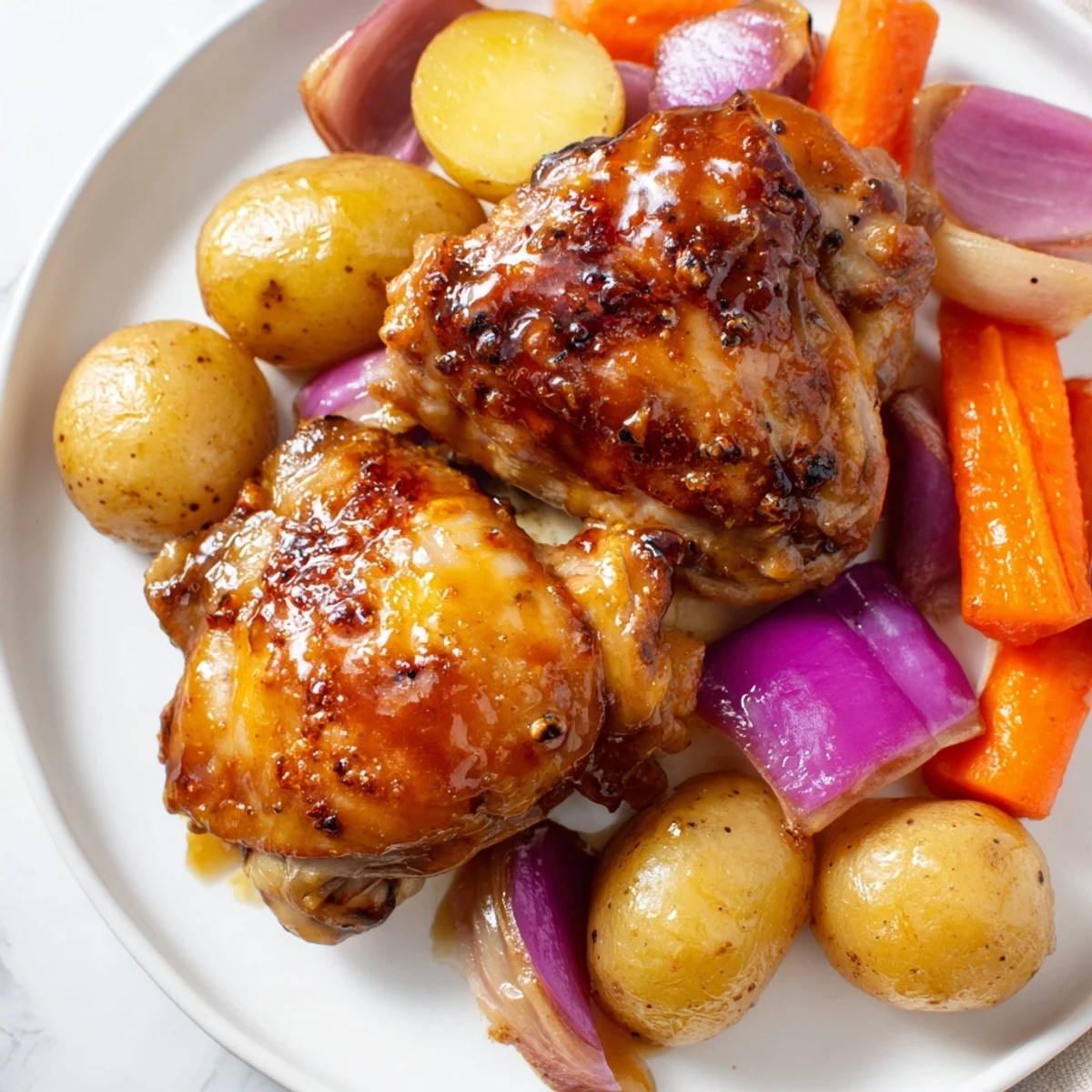 I remember cooking this for my neighbor one Sunday when she mentioned feeling stuck in a dinner rut. Within fifty minutes, we had golden thighs and roasted vegetables filling the kitchen with this incredible savory-sweet aroma, and she came back the next week asking if I'd teach her. Now it's her weeknight staple too, which is the highest compliment a recipe can get.