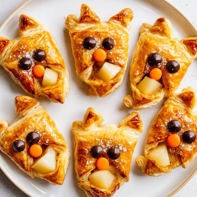 Save Whimsical, tender pastry bites filled with spiced apple and pear, shaped like playful foxes—perfect for autumn gatherings or a fun family treat.