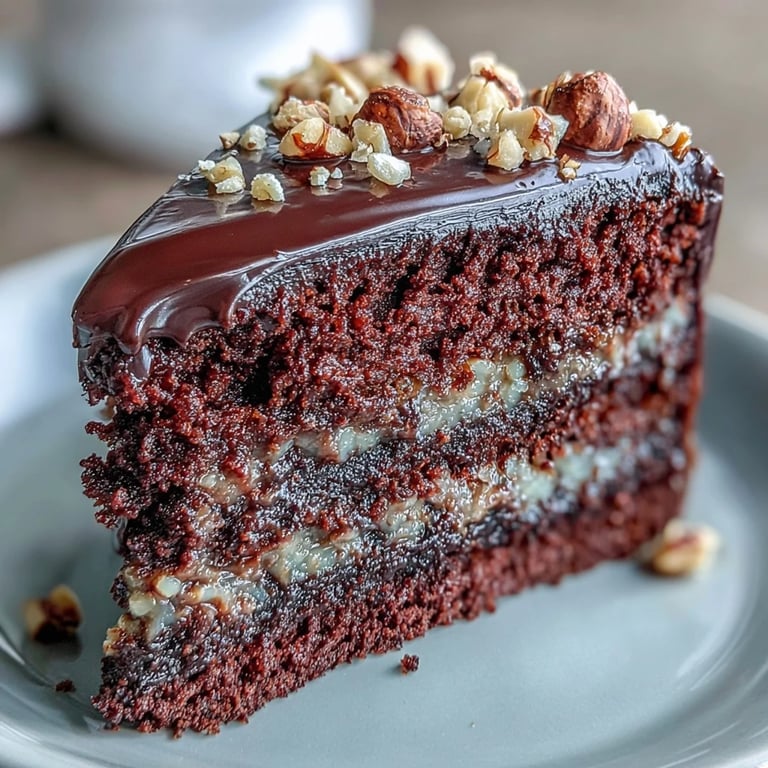 Save My friend Sarah called me in a panic two hours before her dinner party, asking if I could bring dessert. I had olive oil, cocoa powder, and a quiet afternoon ahead, so I decided to attempt something I'd only read about—a chocolate cake built on olive oil instead of butter, layered with dark ganache and crowned with homemade hazelnut praline. The kitchen filled with the smell of toasted hazelnuts and bitter chocolate as the layers came together, and when I arrived at her door with this cake, the whole room went quiet for just a moment before everyone reached for a slice.