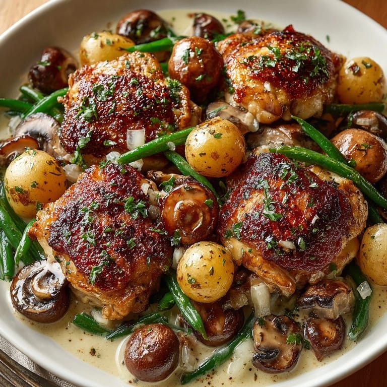 Save This One-Pot Creamy Chicken and Mushroom Skillet is a go-to for those nights you crave a cozy restaurant-style meal with absolute minimum fuss. Juicy chicken thighs mingle with tender potatoes, mushrooms, and green beans in a velvety herb sauce, soaking up every bit of flavor. With just one skillet and a handful of pantry staples, you get comforting food that tastes like you spent far more time than you did. I make this when I want to impress but do not want the sink piled high.