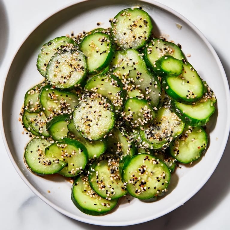 If you want a spicier version, a pinch of chili flakes mixed into the seasoning gives it a subtle warmth without overwhelming the cucumber's freshness. For something tangy and herbaceous, try adding fresh lemon zest along with the juice, or swap in rice vinegar for a lighter, more delicate acid. The timing is flexible too—serve it immediately while the cucumber is at peak crunch, or let it chill for 20 to 30 minutes to let the flavors meld slightly and the seasonings soften the surface just a touch.