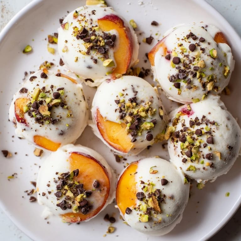 Save Last summer, I was standing in my kitchen on one of those sticky afternoons when even breathing felt like too much effort. My neighbor had just dropped off a bag of perfectly ripe peaches from her tree, and I was staring at them wondering what to do beyond the usual cobbler routine. Then it hit me: what if I combined them with Greek yogurt and froze them into little bites? The first batch came out of the freezer like edible clouds, and I couldn't stop eating them straight from the container.