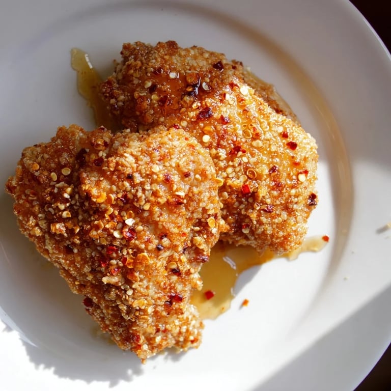 Save There's a moment in every cook's life when a single bite changes how you think about a dish. For me, it was biting into crispy, panko-coated chicken thighs that were still steaming, then the hot honey hit—sweet, spicy, cutting right through the richness with just enough heat to make me pause. I remember standing at the counter, honey dripping onto my fingers, thinking this couldn't possibly be simple enough to make at home. Turns out, it is, and once you master it, you'll make it constantly.