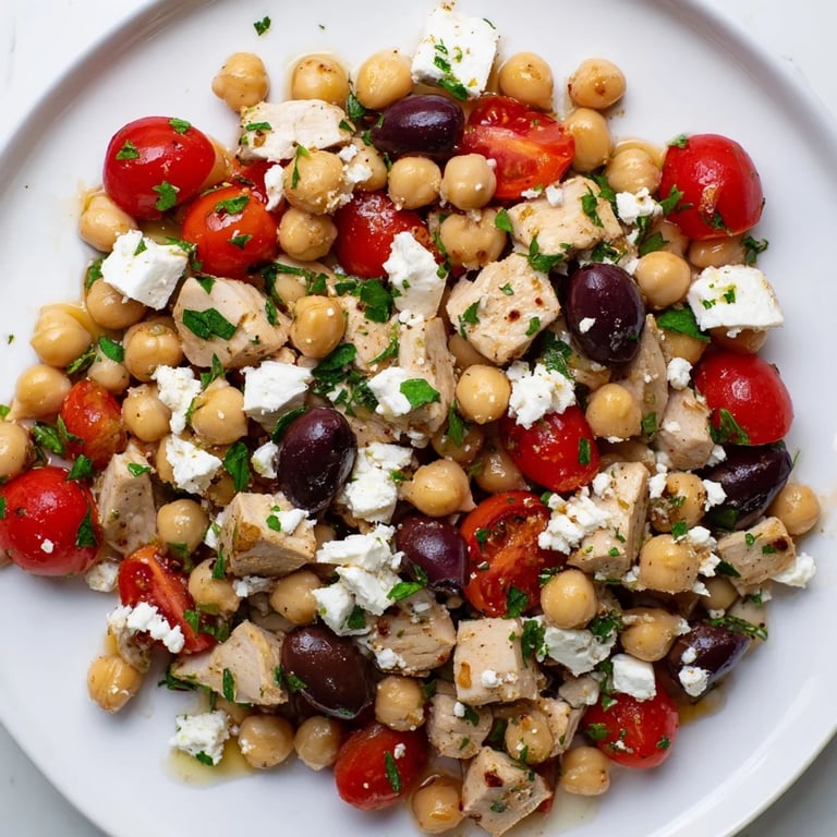 Save My neighbor brought over a version of this salad after I helped her move furniture one Saturday, and I ate it straight from the container standing at my kitchen counter. The tang of lemon and brine from the olives hit first, then the creaminess of feta, and I realized I'd been making chicken salad wrong my whole life. She laughed when I asked for the recipe, saying it wasn't really a recipe, just things she always had around. I've made it at least twice a month since then, and it never gets old.