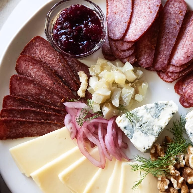 If reindeer meat is unavailable, you can substitute it with smoked venison or beef while maintaining the Nordic-inspired character. For vegetarians, swap the cured meats for roasted root vegetables and smoked tofu to preserve the smoky flavor profile. Adjust accompaniments as desired—such as swapping walnuts for other nuts or seeds—and select gluten-free crackers to accommodate dietary needs.