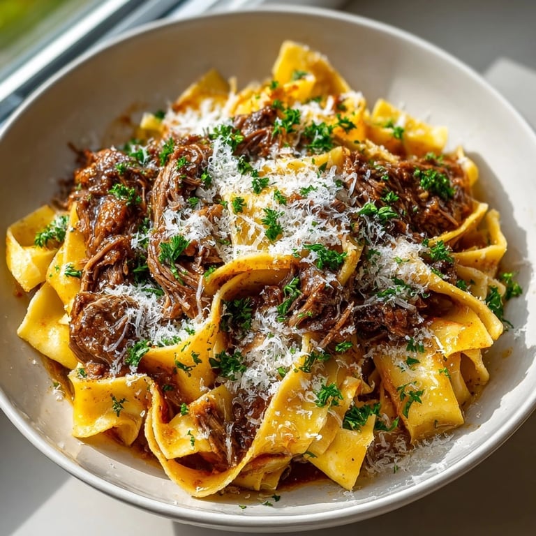 Save This luxurious short rib pasta has become my signature dish for special occasions, combining the rich depth of slow-braised beef with the decadent finish of bone marrow butter. The meltingly tender meat creates a sauce that clings perfectly to wide pappardelle noodles, delivering comfort food at its most sophisticated.